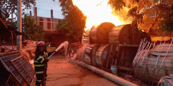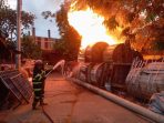 Idnpedia.net – Kebakaran melanda sebuah gudang penyimpanan kabel gulung di Jalan Dr. Setia Budi, Lorong Jok, Kelurahan Kasang, Kecamatan Jambi Timur, Jumat