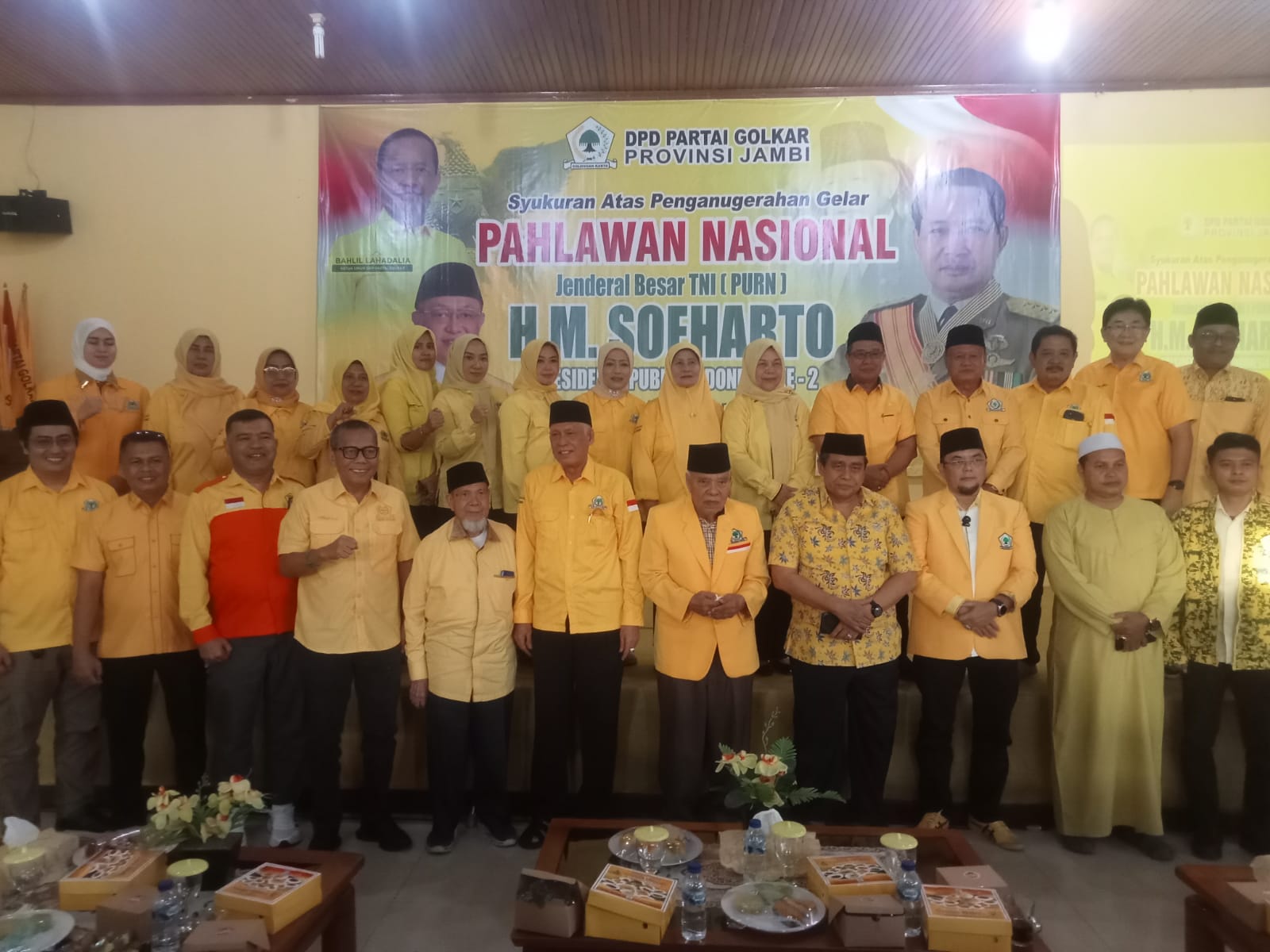 Idnpedia.net – Dewan Pimpinan Daerah (DPD) Partai Golkar Provinsi Jambi menggelar acara syukuran dan refleksi perjuangan atas penganugerahan gelar Pahlawan Nasional kepada Jenderal Besar TNI (Purn) H. M. Soeharto. Acara yang berlangsung khidmat di Kantor DPD Partai Golkar Provinsi Jambi pada Jumat sore 14 November 2025, dibuka oleh ketua DPD Golkar Provinsi Jambi Drs. H. Cek Endra diwakili Ir. H. Ivan Wirata, S.T., M.M., M.T.