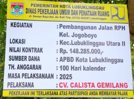 IDNPEDIA.NET – LUBUKLINGGAU –  Proyek pembangunan jalan menuju Rumah Potong Hewan (RPH) di RT 08, Kelurahan Joko Boyo, Kecamatan Lubuklinggau Utara II, yang menelan anggaran ratusan juta rupiah dari APBD 2025, menuai sorotan tajam. Pantauan awak media di lapangan pada 8 Oktober 2025 menunjukkan adanya genangan air di beberapa titik jalan yang baru saja selesai dibangun.