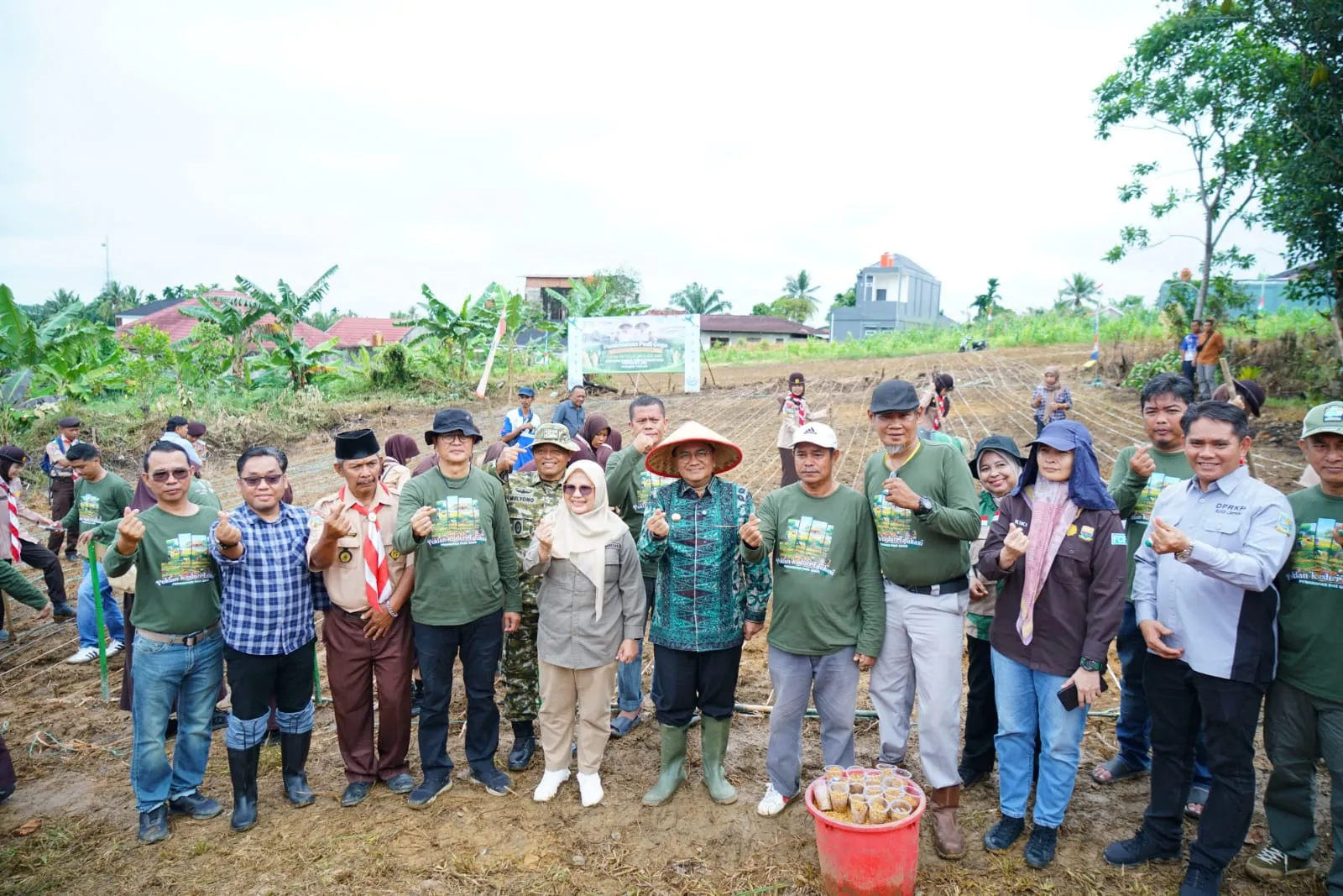 Penanaman secara simbolis Penandatanganan komitmen bersama antara Kepala Dinas Pendidikan, Kepala Dinas Pertanian dan Ketahanan Pangan dan Ketua Kelompok Tani Kasturi bersama Wali Kota Jambi Maulana.